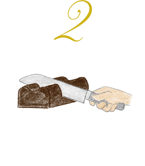ナイフを前後に動かさず、ゆっくりと下におろしてカットします。