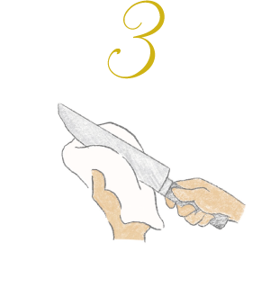 ガスコンロやお湯でナイフを温め、しっかりと水分をふき取ります。